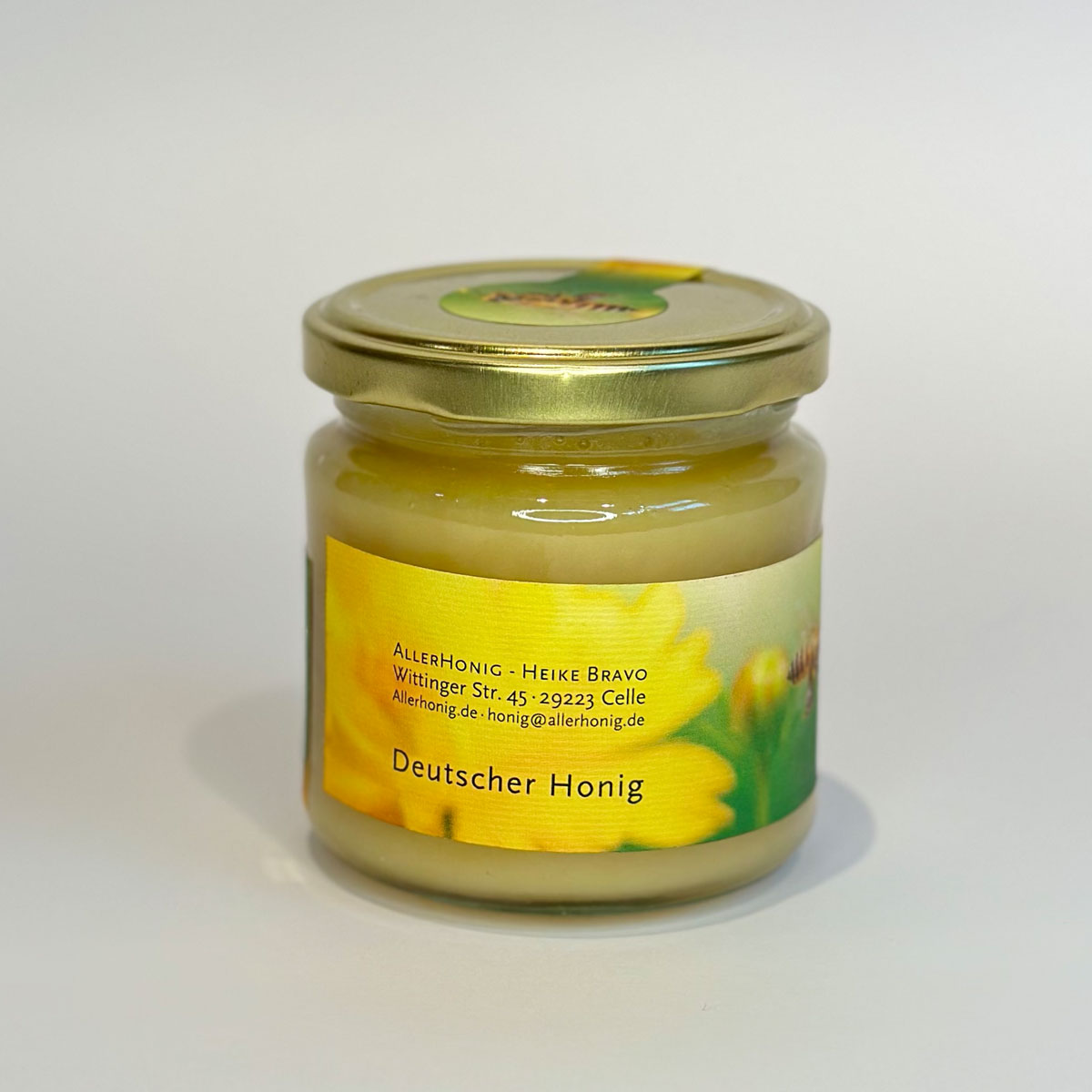 | Lieferumfang | 1 Glas Allerhonig von der Celler Imkerin Heike Bravo (250g) |