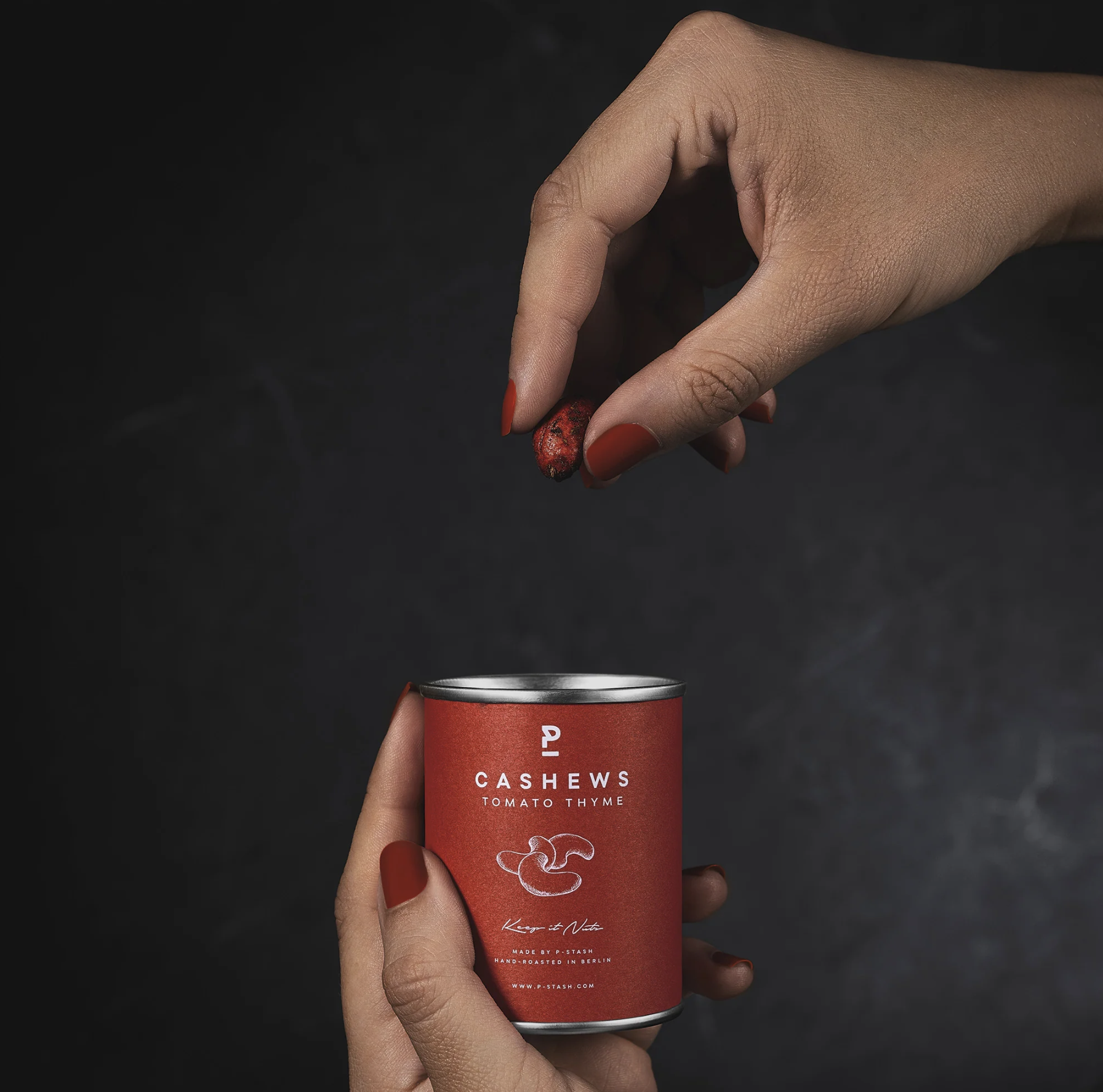 Gönn dir deine P-STASH Tomate Thymian als Snack zu einem leckeren Glas Vino oder verfeinere deine Pasta oder Caprese mit den roten Nüssen. Geschmackliches sowie optisches Upgrade garantiert!