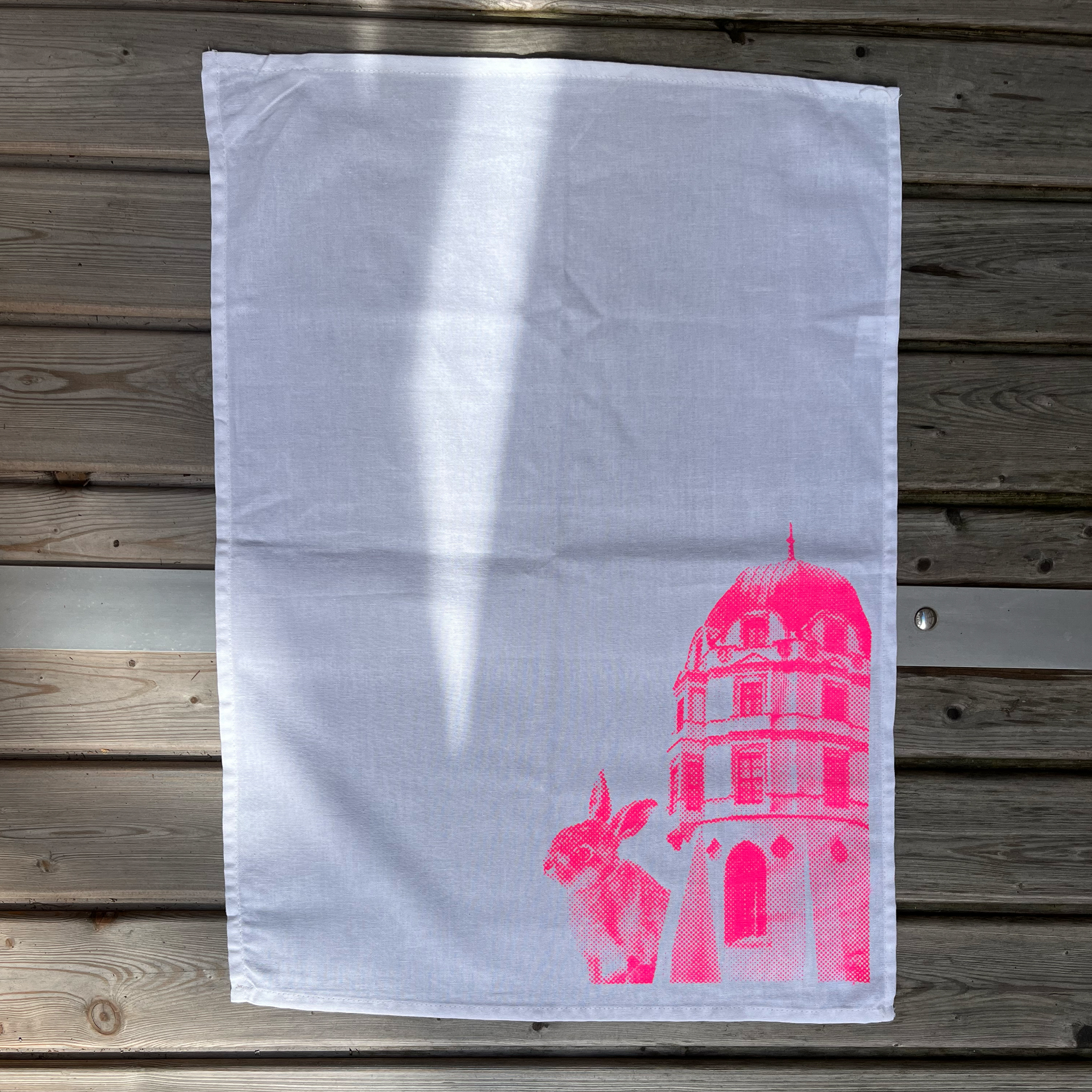 Wunderschönes Geschirrtuch mit Motiv „Celler Schloss und Hase“ in Neon Pink von Allernixe. Auch ein schönes Ostergeschenk oder Mitbringsel.