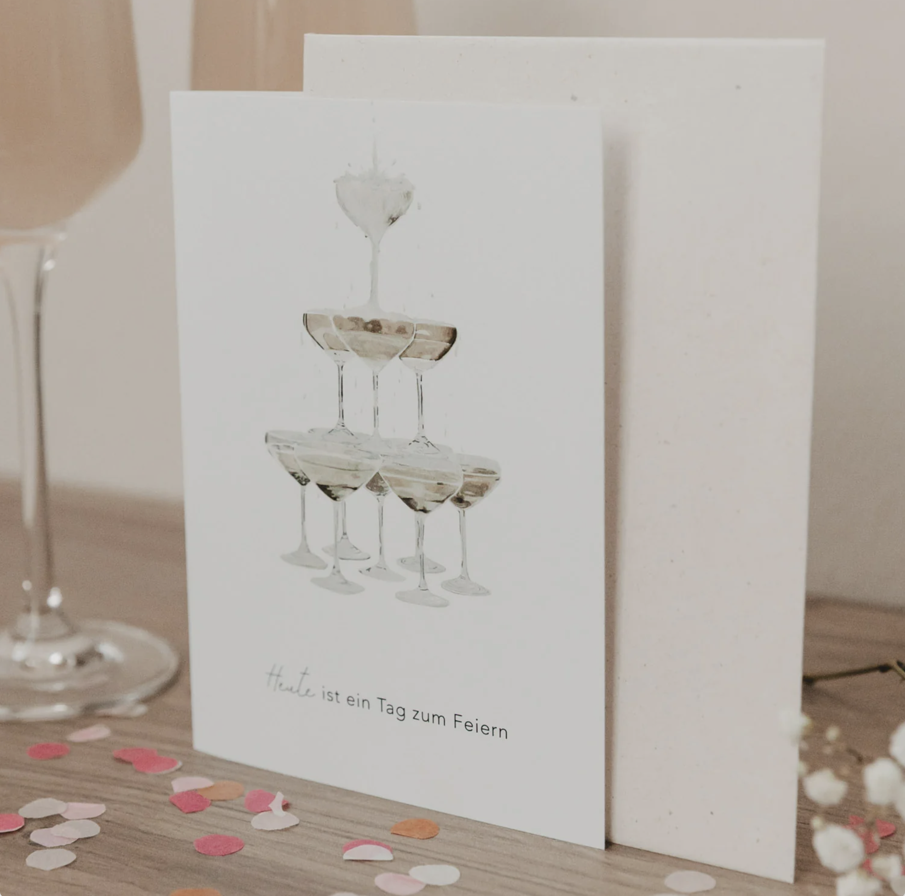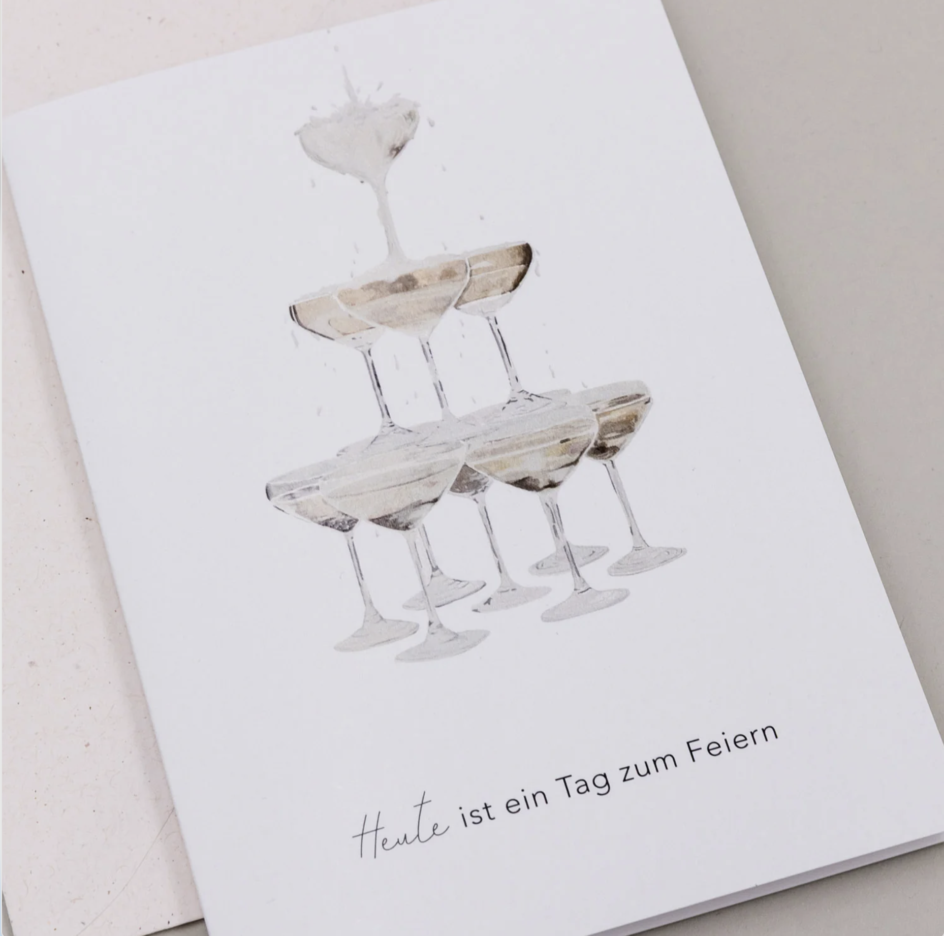 Wunderschöne Grußkarte Champagner mit Umschlag von Eulenschnitt. Eine besonders stilvolle Art schöne Worte an Lieblingsmenschen zu schreiben.