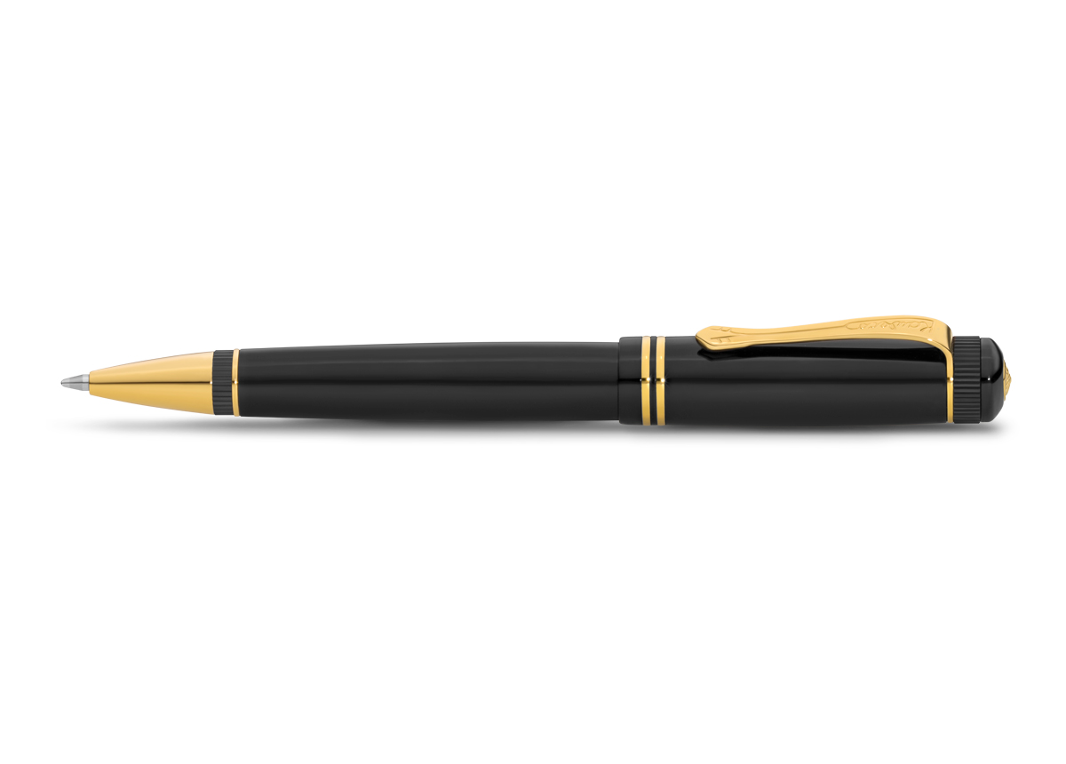 Luxuriöser Nostalgie-Kugelschreiber mit eleganten goldenen Elementen aus Edelharz von Kaweco. Inspiriert von den goldenen 20er-Jahren.