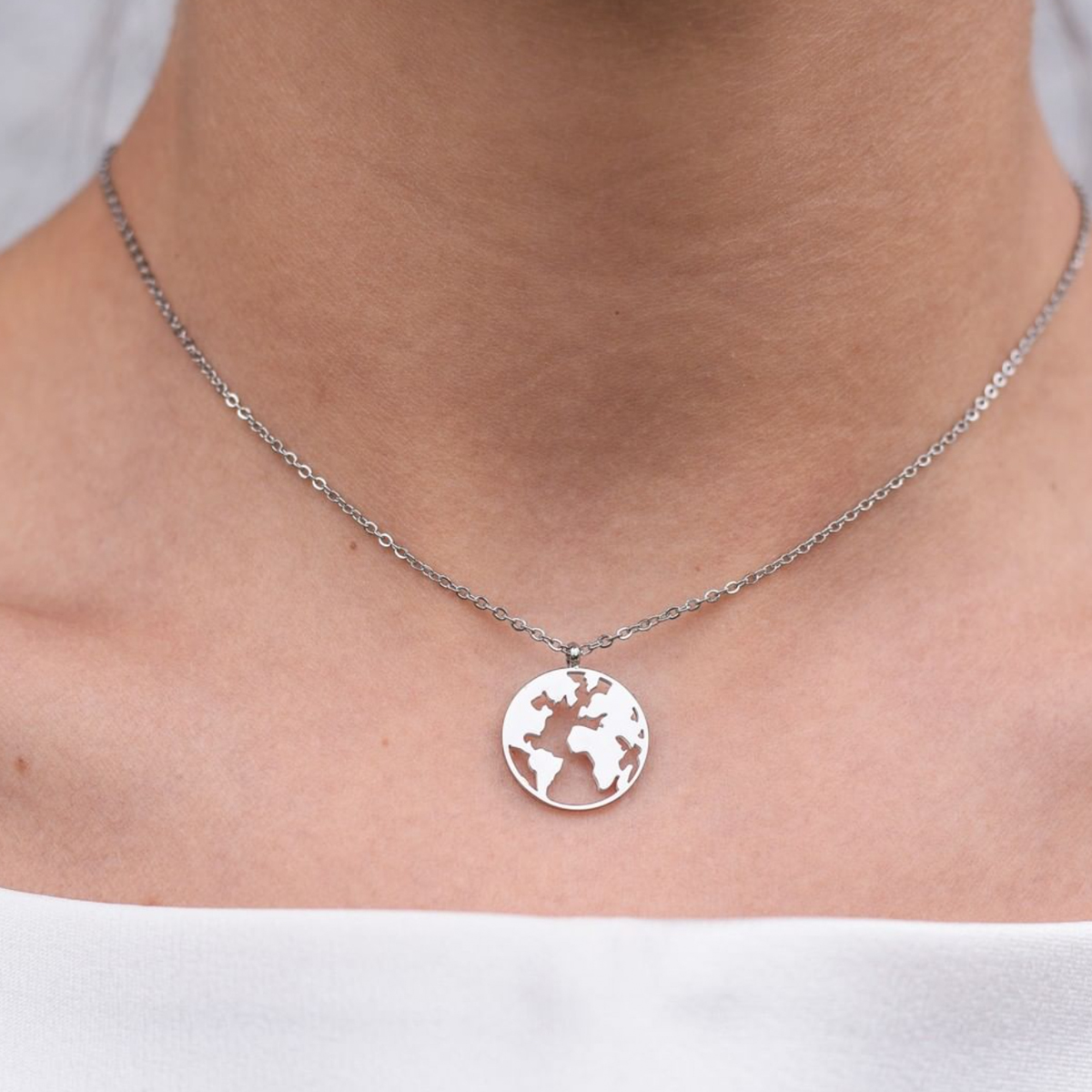 Die schöne Kette mit der filigranen Weltkugel in Silber ist vielseitig kombinierbar und passt zu jedem Outfit – ein echter Hingucker. Das Design ist sehr modern und zeitlos ein. Außerdem ist die Kettenlänge individuell verstellbar.