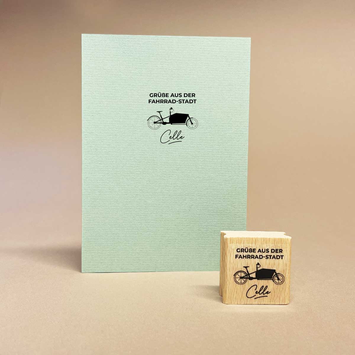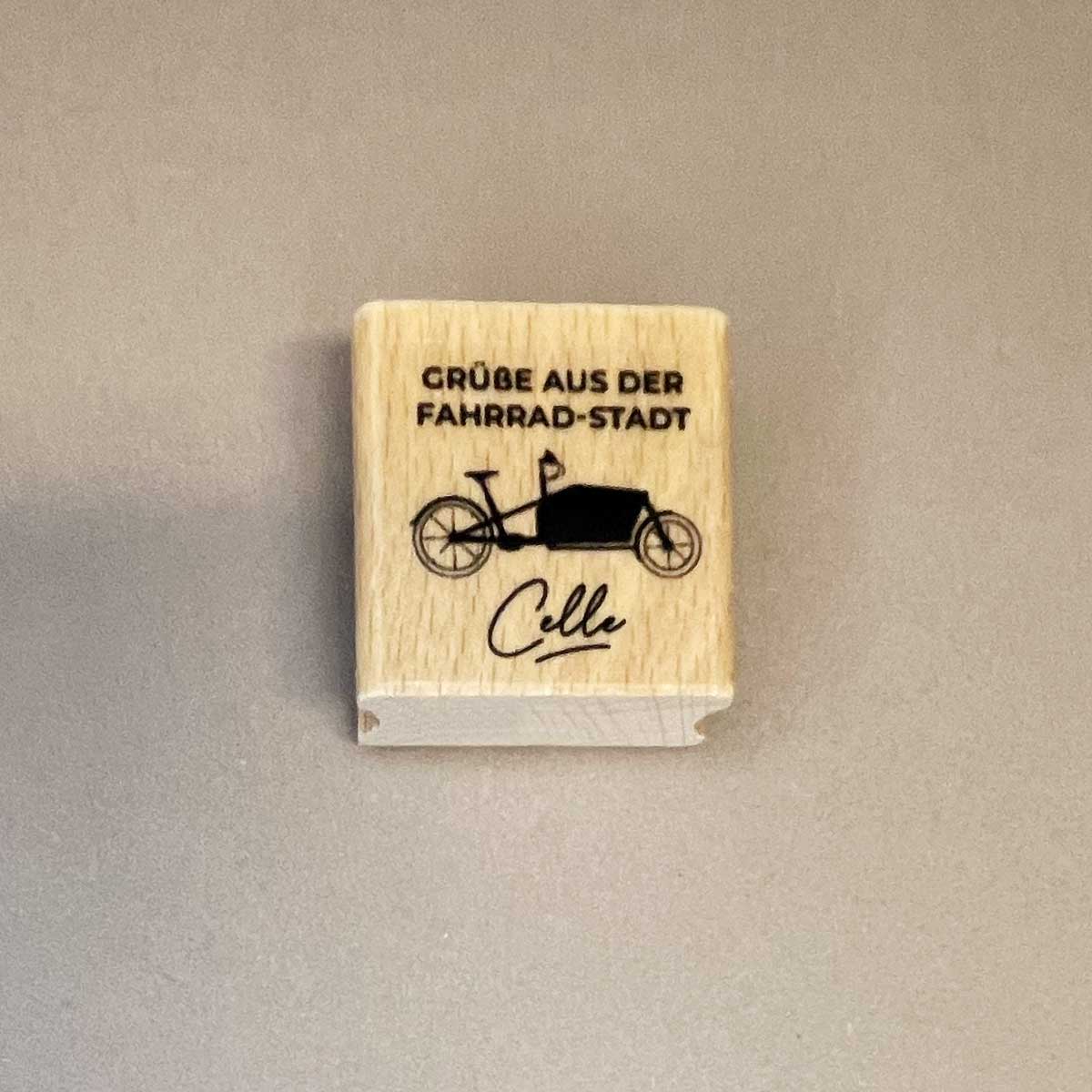 | Produkt-Typ | Motivstempel aus Holz – Fahrradstadt Celle (Lastenrad) |