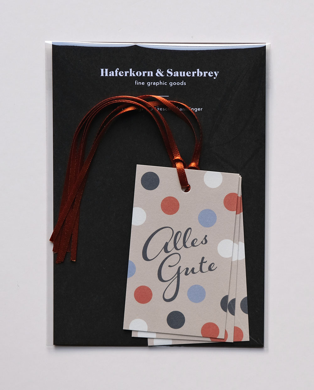 Praktisches Geschenkanhänger Set mit drei Anhängern und hochwertigem, farblich abgestimmtem Satinband von Haferkorn & Sauerbrey aus Berlin.