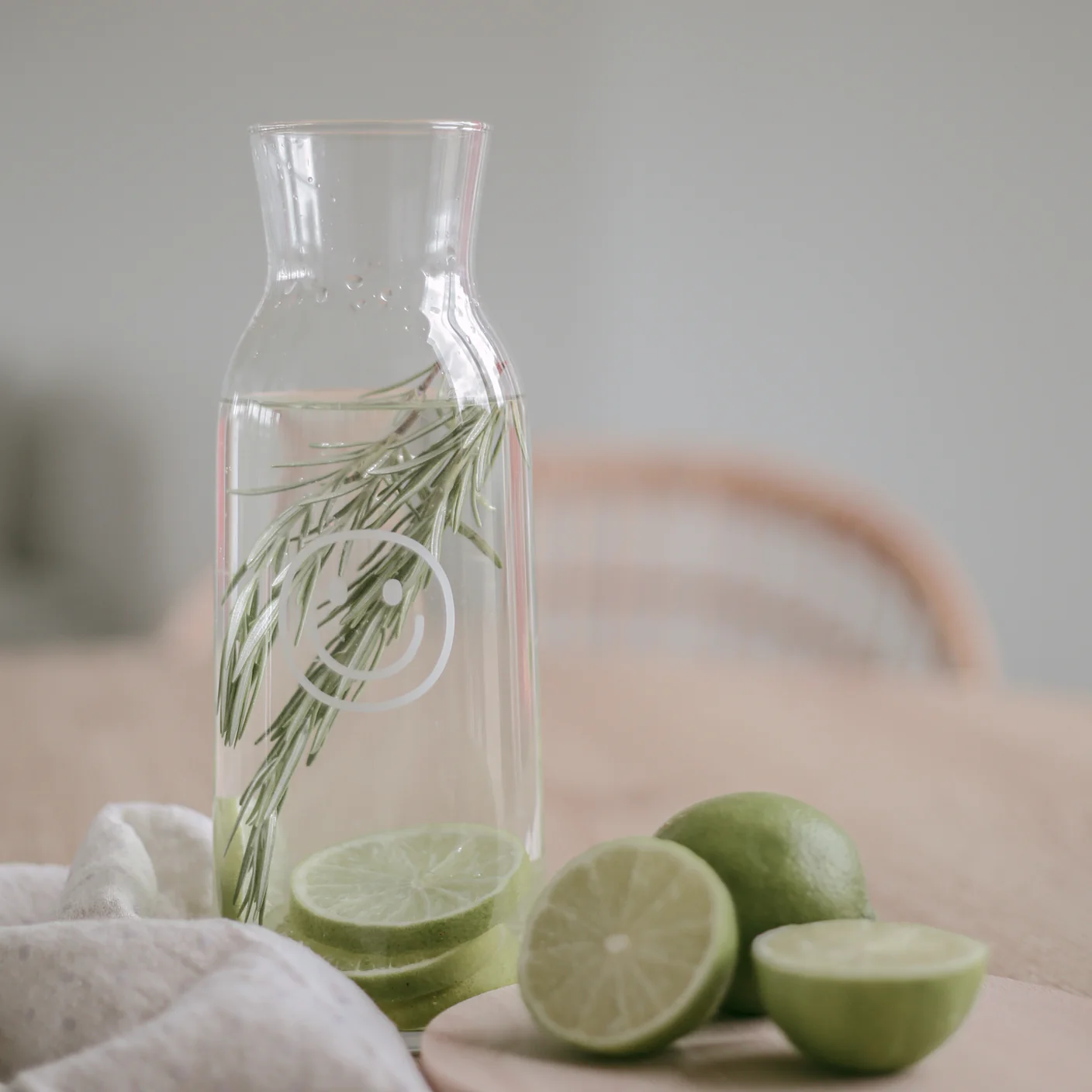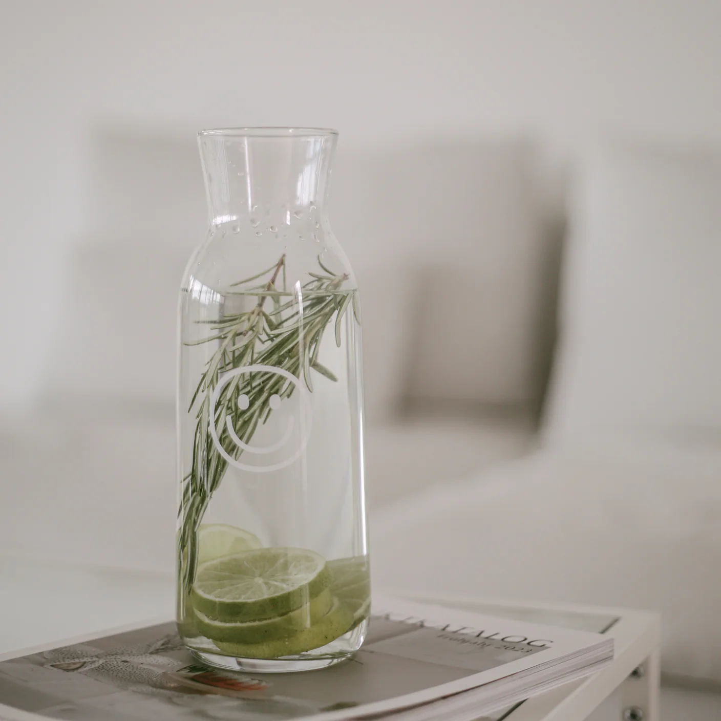 Entdecke unsere wundervolle Karaffe mit weißem Design an der Glaswand. So schmeckt das Wasser, die selbstgemachte Zintronen-Limonade, der frisch gepresste Saft, der Wein oder vieles mehr doch gleich noch viel besser. Diese Karaffe ziert ein freudiger Smiley und macht den Wasserkrug zu einem ganz besonderer Hingucker auf deinem Frühstücks- oder Abendtisch! Mit dem weißen Print passt die Karaffe perfekt zu unseren hohen Trinkgläsern.