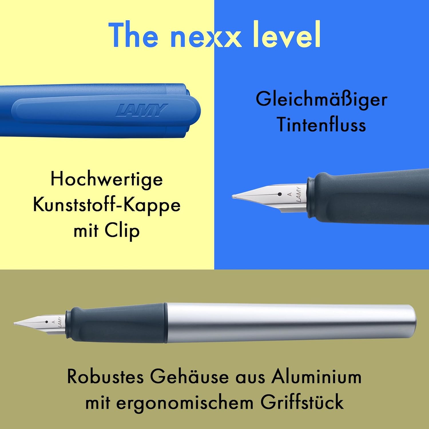 LAMY nexx Füllhalter in der Farbe Blue. Perfekt als Schulfüller, in der Universität oder im Büro. Zum selber schreiben oder als ein ganz besonderes Geschenk.