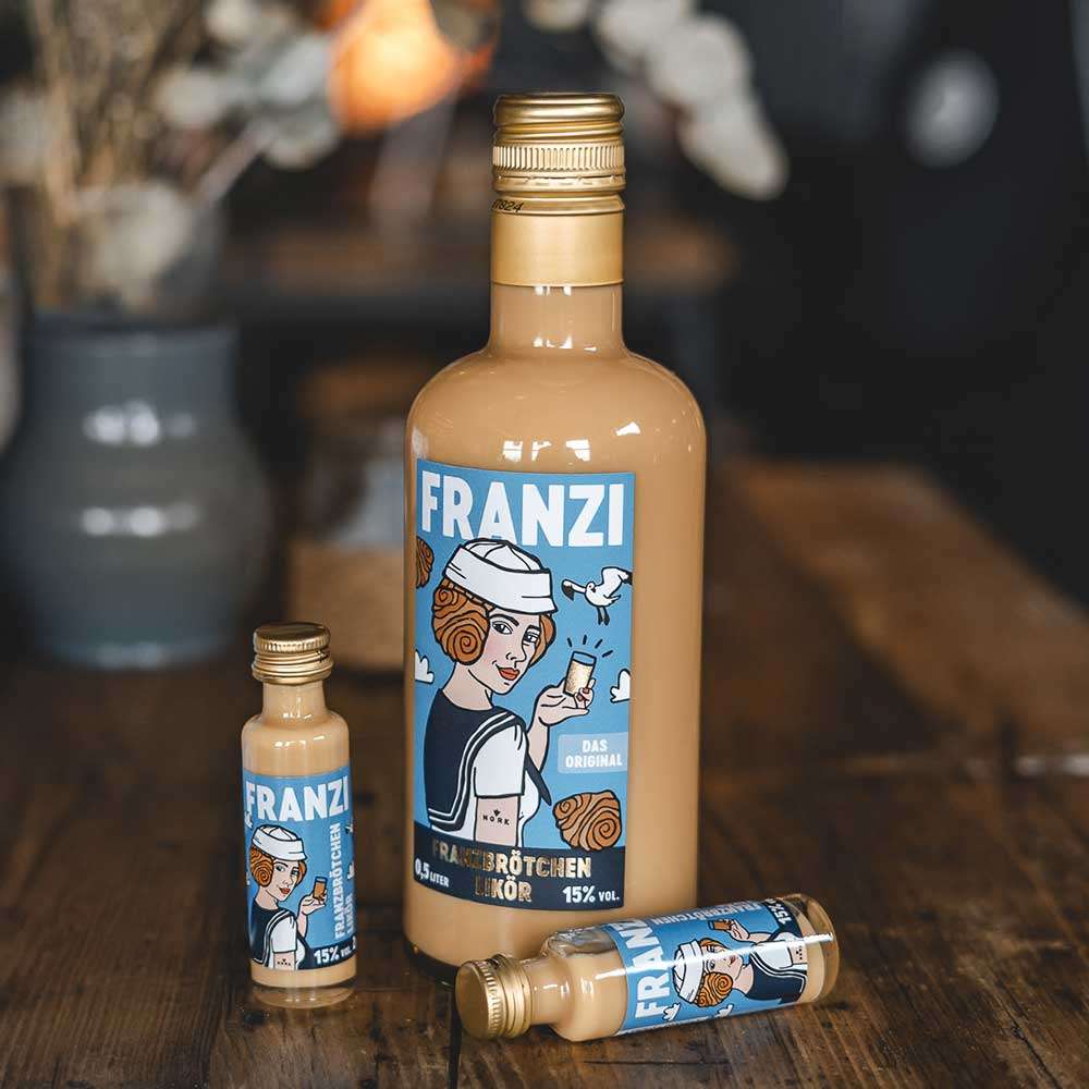 Seit 2021 gibt es das Hamburger Kultgebäck nun endlich in der flüssigen Form mit ein paar Umdrehungen. Die Entwicklung des Franzbrötchenlikörs mit dem geliebten Geschmack hat fast vier Jahre gedauert. Die Erfinder von Franzi sind stolz wie Bolle auf FRANZI und schenken euch mit unserem zimtigen Sahnelikör ordentlich ein. Überzeugen konnten wir damit bis jetzt nicht nur Hamburger, sondern Franzi erfreut sich deutschlandweit großer Begeisterung.