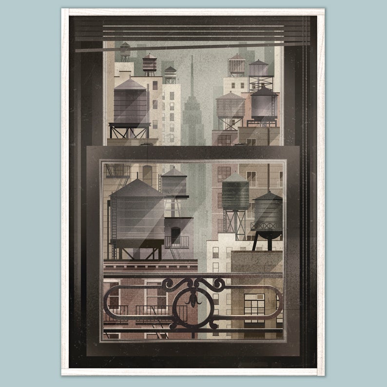 Wunderschönes Poster „NYC Window“ (New York City Fenster) vom Hamburger Illustrator Dieter Braun.