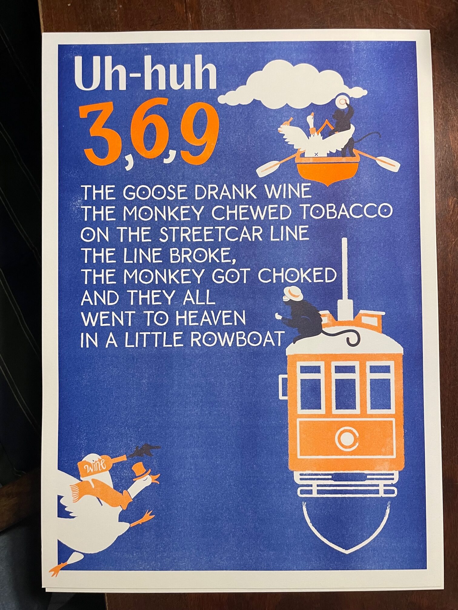 Wunderschöner bunter Risodruck „3, 6, 9“ von The Collectors aus Hamburg. Eine schöne Geschenkidee und echter Hingucker – das kommt Laune schon beim Betrachten auf.