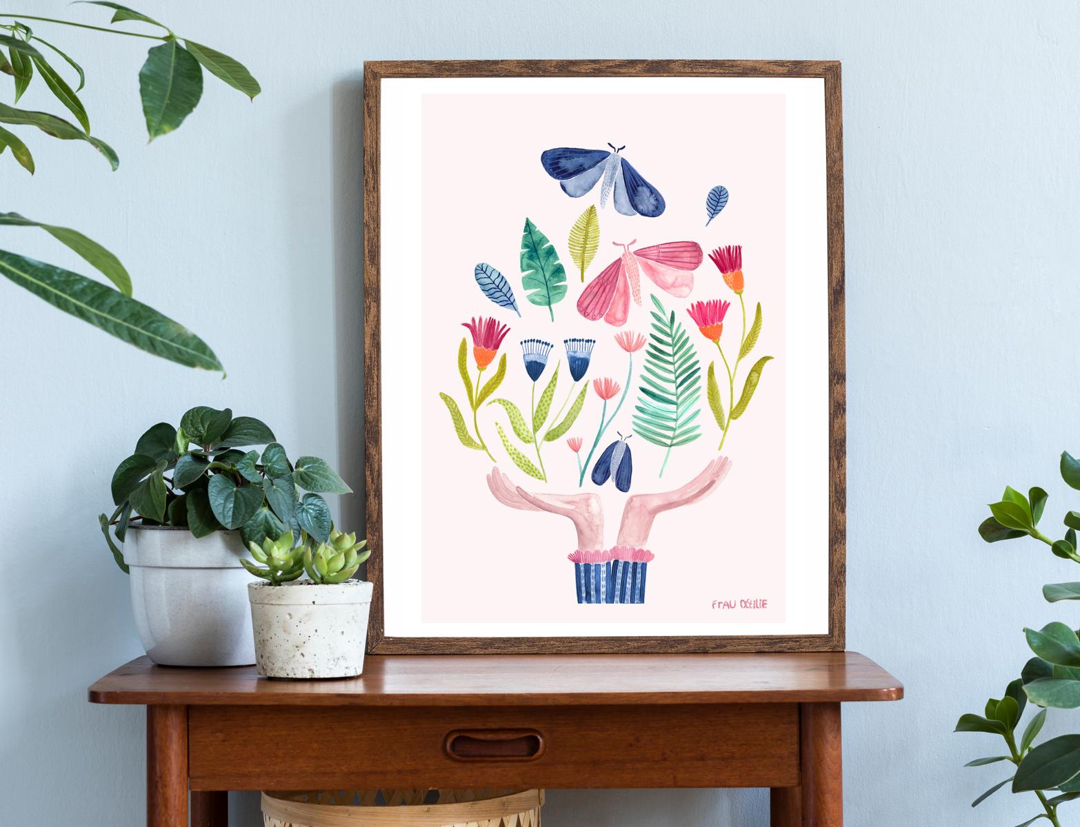 Wunderschöner Print mit liebevoll illustrierten Blumen in DIN A3 von Frau Ottilie. Ein perfektes Poster für große und kleine Leute, die Blumen lieben mit positiver Botschaft.