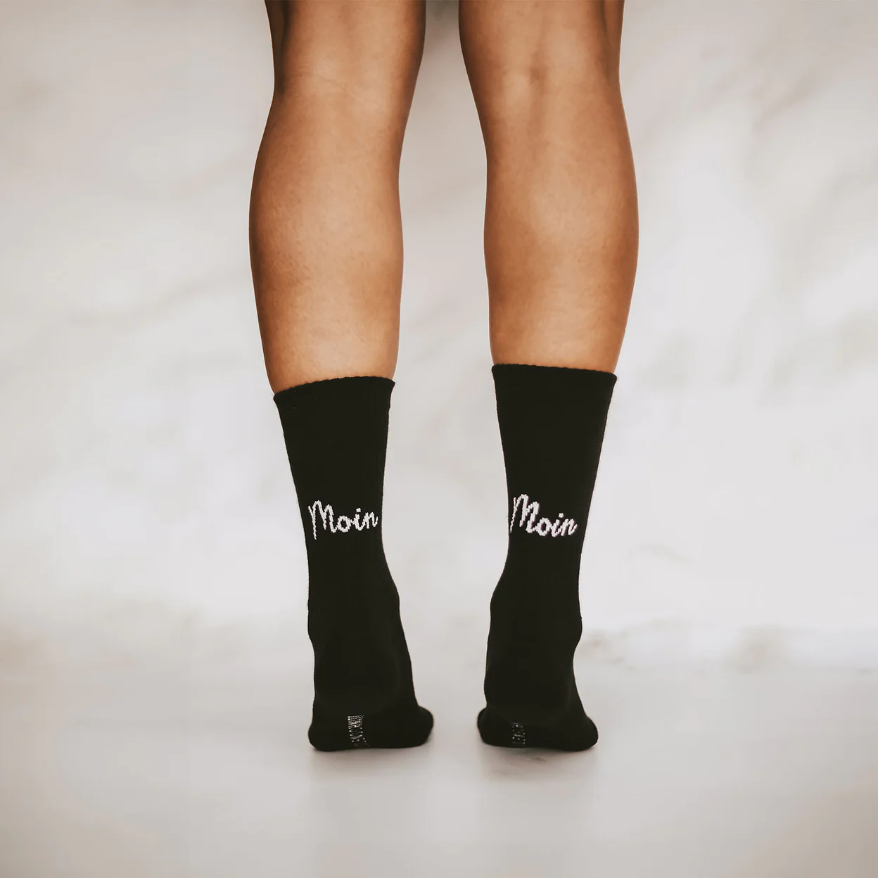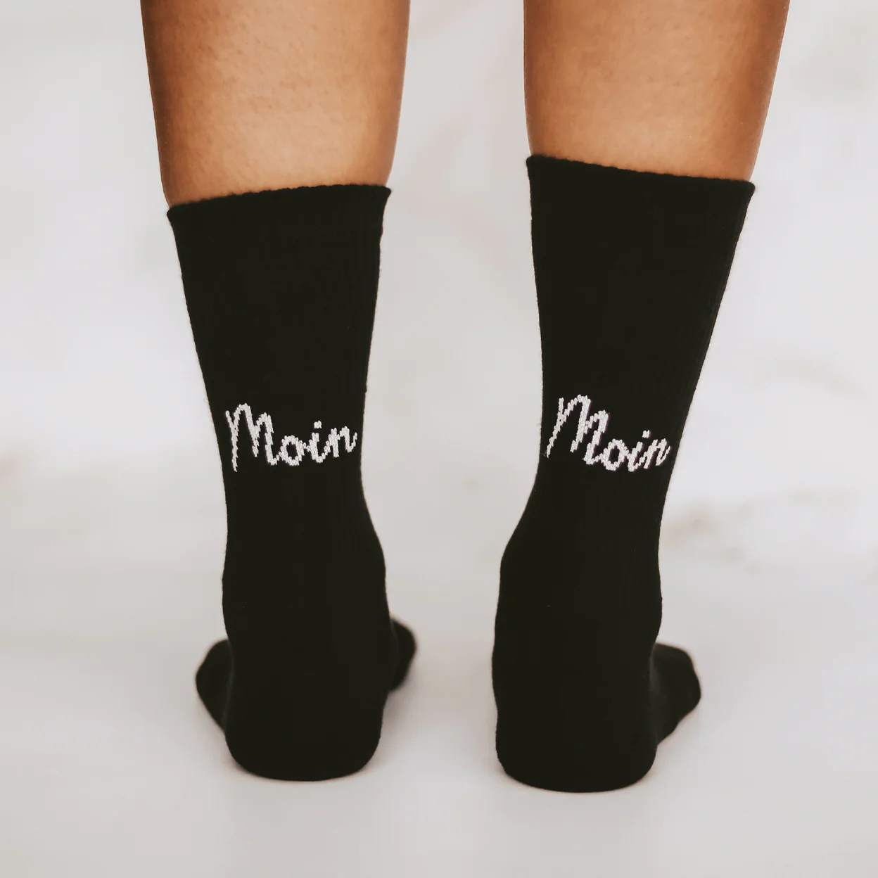 Endlich da: Die Socken Moin Moin in schwarz von Eulenschnitt. Diese Socken zaubern jedem ein Lächeln ins Gesicht! Der Spruch Moin Moin auf der Ferse schaut über deinem Sneaker hervor und machen gute Laune. Auch ein schönes Geschenk.