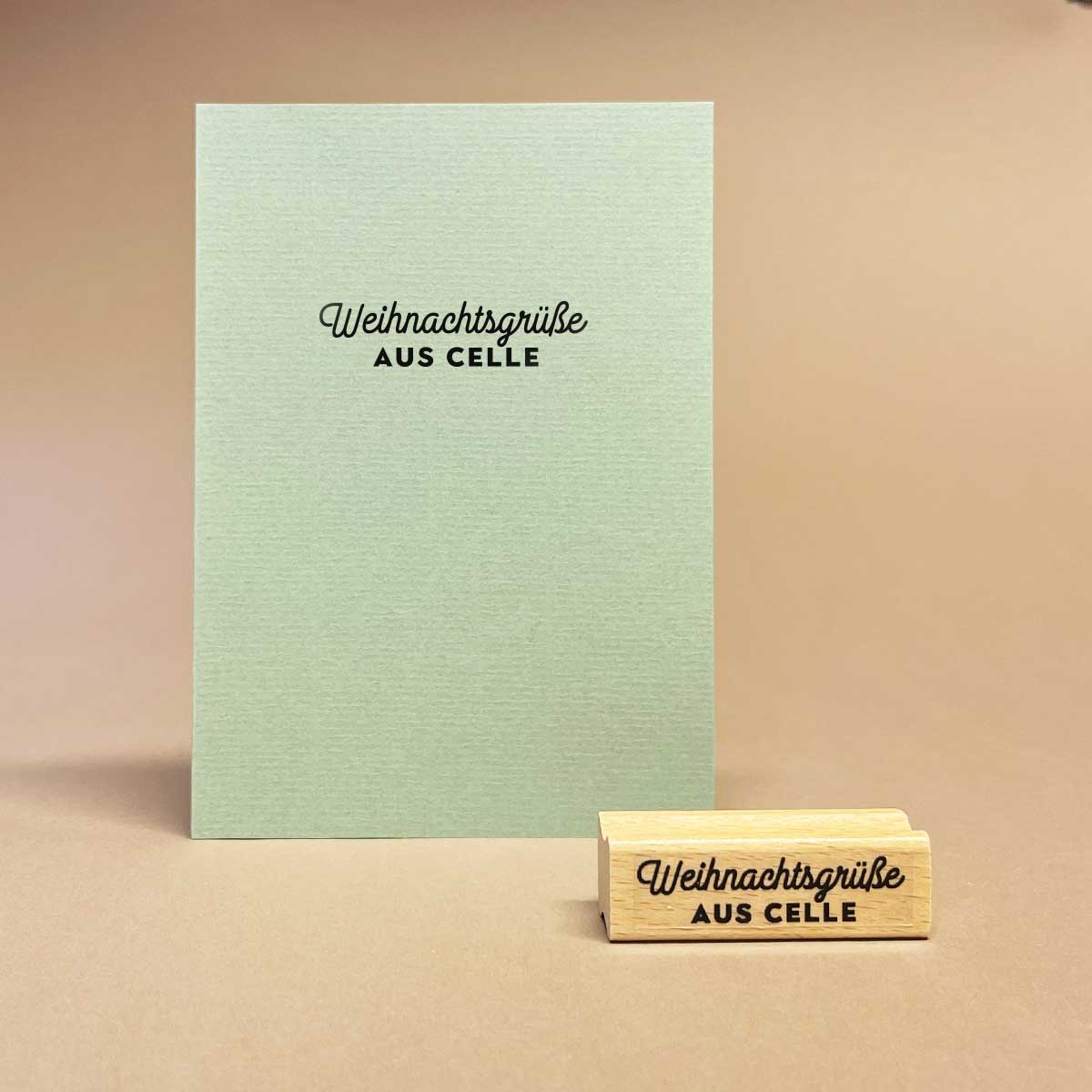 Mit unserem Stempel „Weihnachtsgrüsse aus Celle“ lassen sich wunderschöne Karten, Kerzen und vieles mehr gestalten. Perfekt für Deine lieben Weihnachtsgrüße.
